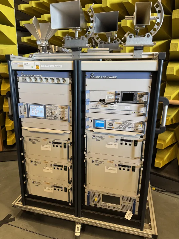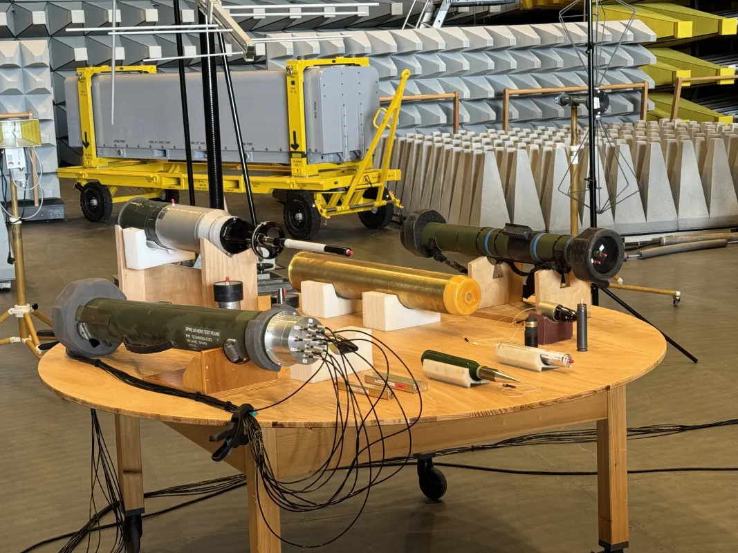 A central focus was the site’s EMC Center, which plays a key role in testing the electromagnetic compatibility of military systems. The facility covers a broad frequency range—from 10 kHz to 40 GHz for radiated testing—and is equipped with high-performance amplifiers (up to 10 kW), shielded chambers providing up to 100 dB attenuation, and precision instrumentation for emission and immunity measurements. Demonstrations included field strengths exceeding 600 V/m, showcasing the center’s capability to evaluate mission-critical equipment under extreme electromagnetic conditions.